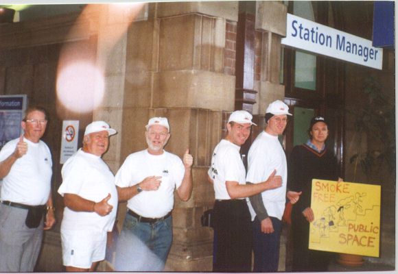 The photos show our members being interviewed as we delivered the good news to bar workers and encouraged them to act. The actions of NSMA members were featured in Channel Seven News in NSW on 3 May 2001 with the message that people were demanding immediate action to ban smoking in clubs and hotels.