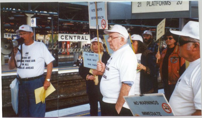"We are protesting that the station manager does not enforce the no smoking laws because he knows the Minister does not want any confrontation with his own smoking staff. Any day of the week you can see the staff smoking under covered areas where it is prohibited. What hope is there of stopping passengers from smoking when the staff are openly smoking?"