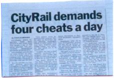 Action Point 2. (Only if you have time to waste) Ring the NSW Transport Infoline on 131 500 and register a complaint every time you see someone smoking on railway stations. If you would like to receive your own personally signed copy of Kevin Moss's famous letter, ask to be informed of the outcome of your complaint. Perhaps you could then send it into the office; we still have a bit more space on the toilet walls.