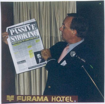 A very successful dinner in honour of Mrs Marlene Sharp was held at the Furama Central Hotel in Sydney on 28 November 2001. You will recall (Update No. 35) that Marlene was the courageous lady who, in spite of her illness with cancer, decided to put herself through the gruelling fight to vindicate her belief that her cancer had been caused by 22 years of exposure to other peoples' cigarette smoke while working in hotels and clubs in Port Kembla NSW. She was never a smoker and she was awarded $466,000 in a world first "passive smoking causes cancer" court decision. Over seventy members attended the dinner and were treated to a very gripping first hand account of the cut and thrust of the legal battle by senior barrister, Peter Semmler QC.