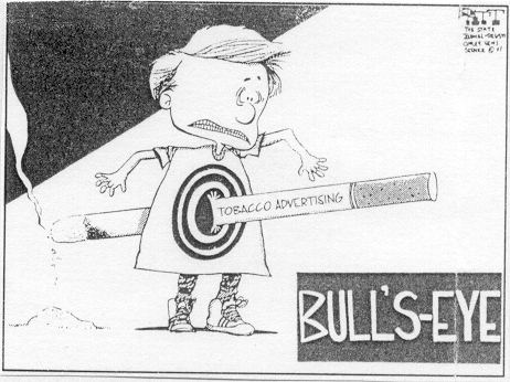 Tobacco Ads and Promotions always target the young - Cartoon from GASP