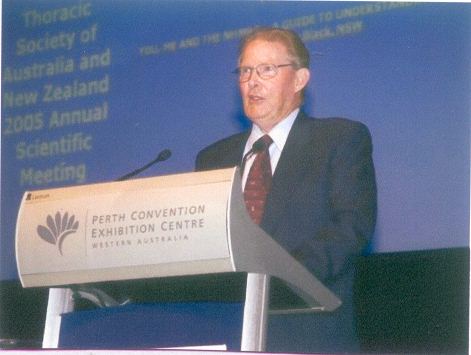Brian McBride receives his award I don't think that the award should be for politicians who just pass legislation as a response to public demand but who have no real commitment to the health of the public rather a desire to stay in office. I believe that our society should acknowledge and encourage people like Brian because it is through them that change can be made to happen. I have personally witnessed how effective voluntary community activism or service can be in achieving change in the areas of smoking control as well as asbestos regulation. I know from my own experience how difficult it is to achieve change from within the health system (however much one believes in the system) because of the inertia of the bureaucracy and the nature of our wonderful democracy. Western Australia was the first state in the English-speaking world to introduce legislation for tobacco control into parliament but not the first to pass it. It happened because a group of like-minded people got together, initially in a somewhat clandestine way, prepared a parliamentary bill and then found an independently-thinking committed parliamentary backbencher to introduce it into our state parliament (just up the hill from here). Of course it failed but it excited community debate about smoking like nothing had before and ultimately the government of the day decided that the community was ready for change if not demanding it. And so it obliged with a bill to reduce tobacco advertising in the state. But only to the extent that the majority could cope with it. The same has occurred throughout Australia, bit by bit, state by state. As it has done in the rest of the western world, incrementally and depending on how much it is possible to contain the influence of the tobacco and entertainment industries, who are committed to holding it back. In other places like California, progress has been faster than in Australia. But smoking prevalence rates have fallen, albeit currently stalled, and smoking-related disease rates have also fallen in Australia. So the effort has been rewarded. Brian McBride was one of the Australians who determined that he needed to put in the extra effort over 30 years ago. He never earned a living from the anti-tobacco business which did not really exist at the time. He was an electrical engineer who graduated from UNSW in 1964 having gained a diploma in electrical engineering from Sydney Technical College in 1959, retiring from deputy directorship of the Sydney office of the Commonwealth Dept of Industry, Science and Technology in 1996. He hated being subjected to the passive smoke generated by his 4 brothers and 2 sisters and started a 1-man campaign to get smoking banned on his local bus service in 1976. The unreasonable objections and personal attacks on him by smoking bus drivers escalated to the point that he sued one driver for assaulting him with cigarette smoke and won the case. It made front page news in the Sydney Morning Telegraph and eventually National TV! As a result of the publicity he was approached by a number of people to keep the fight for non-smokers' rights going in other areas like restaurants. He then organised a public meeting in Parramatta in October 1977 where the Non-Smokers Movement of Australia was formed. Brian became Honorary President for the first 10 years. He then stepped down to become vice-president and was replaced by Dr Arthur Chesterfield-Evans. After Arthur entered the NSW Parliament in 1997 Brian resumed the role of president until 2003 when he retired. Campaigns were conducted by encouraging workers to rebel against past acceptance of smoking as a "workers' right"