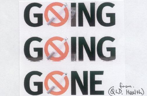 Qld. Health Poster BOOK REPORT: Geoffrey Blainey's "Black Kettle and Full Moon" Penguin The Master storyteller and historian, in his guided tour of a vanished Australia, brings to life for the modern reader the sights and sounds and smells of another time, from the gold rushes to World War 1. Chapter 11, "To tipple and to smoke" tells of tobacco arriving in the First Fleet, of the increase in smoking with the invention of the safety match, of roll-your-owns, of tobacco gifts from Australia to soldiers. Tobacco Industry advertising through Television, Film, and Theatre. ***Bollywood Good News from the centre of film-making in India, Bollywood. The Government of India has banned smoking scenes in Indian films and, if an earlier film with smoking is shown, prior warnings of the dangers of smoking are to be shown. When will our Government do the same? ***Formula One Grand Prix Motor Racing Big Tobacco couldn't miss an opportunity to spread their evil message and have apparently squeezed a previously unscheduled Grand Prix into the calendar in Australia prior to the October 2006 deadline. Watch for a flurry of Marlboro, Gauloise, Camel,etc. logos in our young people's magazines following that date, as the industry wrings every drop of so-called "news and comment" out of the last legal advertising opportunity. Tobacco advertising at Formula One Grand Prix events in the European Union is banned from 31July 2005, however there are no controls preventing viewers watching coverage from such places as Hungary or Australia, so the orgy continues. ***Community Theatre Non-smoking Actors expected to Light Up for Real. No prior warning was given before four authentic cigarettes were smoked during a recent local community theatre opening night near Sydney. Children sat in the front row in the small theatre, and the smoke was extremely offensive. Following spoken and written complaints, warnings were given prior to performances, but the smoking continued for the remaining season. Performances may be exempt from smoking bans (we will be calling for total bans) but the smoking would have been more convincing and far less harmful if the non-smoking actors had simply pretended to suck and blow on the offending cigarettes. They wouldn't use real bullets, would they? At the same time, professional actors were very convincing in "Ruby's Last Dollar" at Sydney's Opera House. The play was about gambling addiction, and all of the cigarettes remained unlit. ***Sherlock Holmes on ABCTV The 1902 detective and Dr. Watson, as well as two upper-class ladies are depicted as cigarette smokers in a BBC/WGBH production shown on ABCTV lately. Hardly necessary to the plot, and highly questionable as authentic for the era. Our complaint to ABC calls for them to at least show Cancer Council's warning commercial which is being used in some cinemas, giving prior advice to young people of "Tobacco's Tactics".