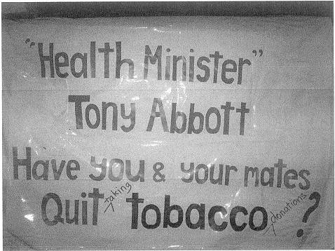 We need to work together to dramatically increase life expectancy and to reduce children's exposure to secondhand smoke. This tobacco control resource kit for Indigenous Australian communities aims: * To Assist health professionals, along with community and education workers, to become community leaders in the area of tobacco control. * To raise the priority of tobacco control in Indigenous communities. * To build community ownership in tobacco control by supporting community initiated and controlled action. News stories which depict Smoking - Do they breach Tobacco Advertising Laws? Show Graphic Warnings, not Smiling Smokers Tobacco Advertising Prohibition Act (TAPA)1992 - , a tobacco advertisement is basically anything that gives publicity to or promotes: * Smoking * The purchase or use of tobacco products * Etc. We are constantly exposed to news stories from around the world about tobacco and smoking, many stories being about strong legislation for tobacco control. Unfortunately, however, the stories are usually accompanied by positive smoking images in print and on television, often depicting smoking as a normal, pleasurable pursuit, a part of everyday life. Such images are actually advertising tobacco and are thus breaches of the TAPA. The stories should only be accompanied by approved Graphic Warnings, to illustrate the news items appropriately. Sydney University Prof. of Public Health. Simon Chapman warns that the Federal Government must strongly regulate against "glamorising" smoking on "YouTube". (Sept2007) Some of the material could have been provided by amateurs, but apparently some are fairly obviously aimed by Big Tobacco at encouraging young people to smoke. Further inroads curbing smoking in cars with children Following our previous Clean Air Update, a further two states are regulating to protect children from secondhand smoke in vehicles. - congratulations to all involved, in Tasmania and Queensland. California USA has also agreed to regulate to make cars carrying children smokefree. |